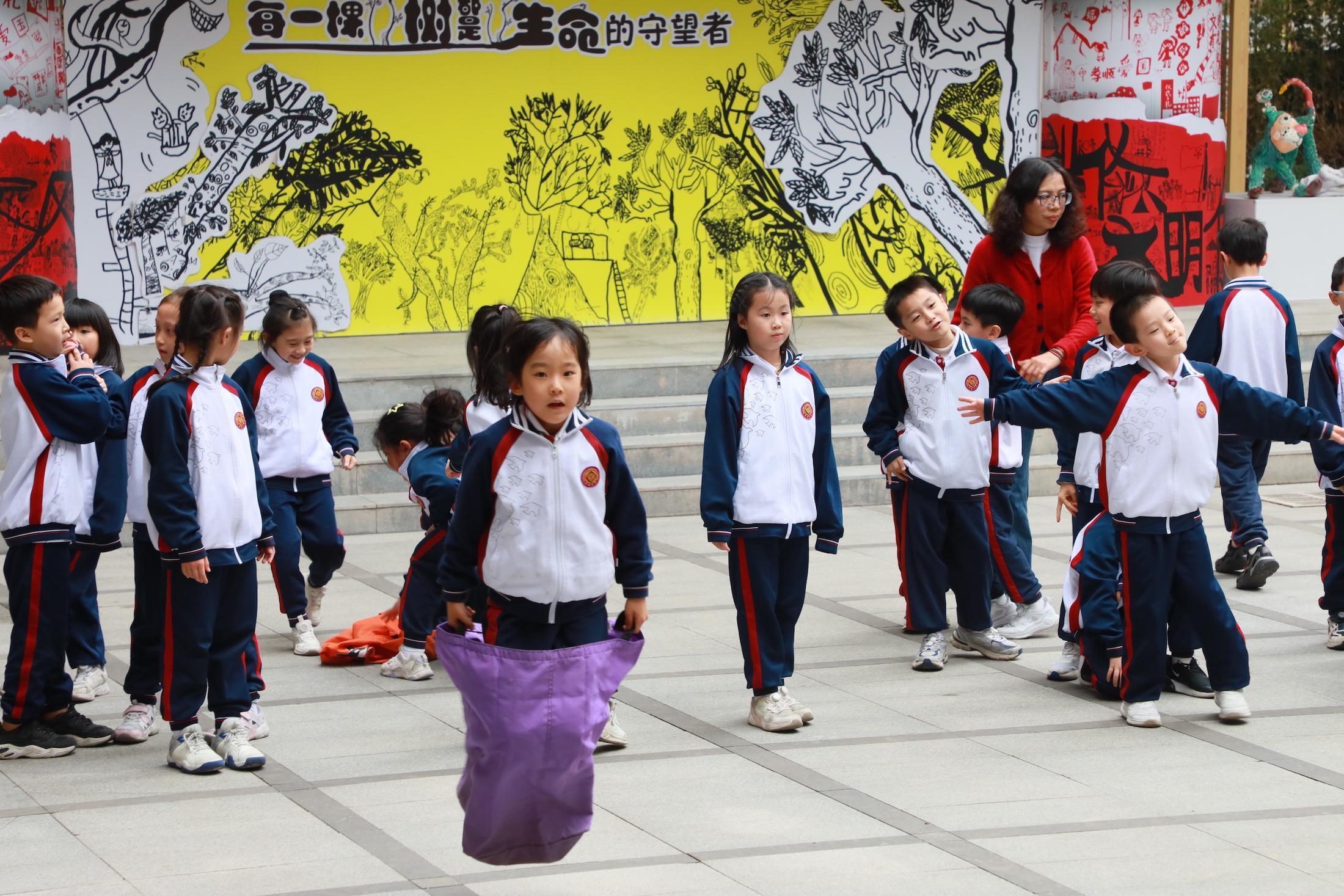 广州市天河区华阳小学的学生开心地做游戏。人民网 宁玉瑛摄